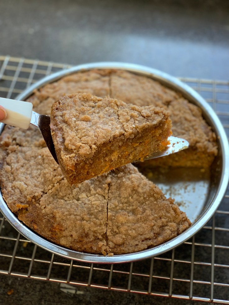 – sprinkle the streusel topping on the cake and bake for 30 minutes