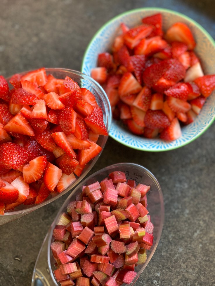- 1 lb (@ 4 cups) rhubarb, chopped