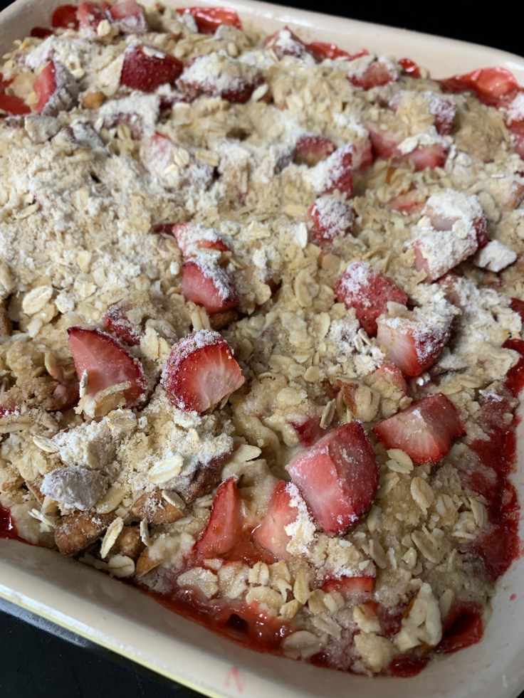 - mix the pecans with the remaining oat mixture and crumble on the top