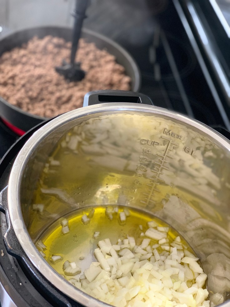 in an Instant Pot, saute the onion in some olive oil and then add the pepper and garlic
