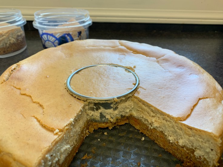 in order to get the perfect size for my containers, I came up with this method to cut the cheesecake…