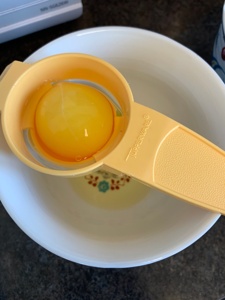 *** side note: I just love this Tupperware egg yolk separator… I tend to not have many kitchen gadgets but this is one that I use on the regular***