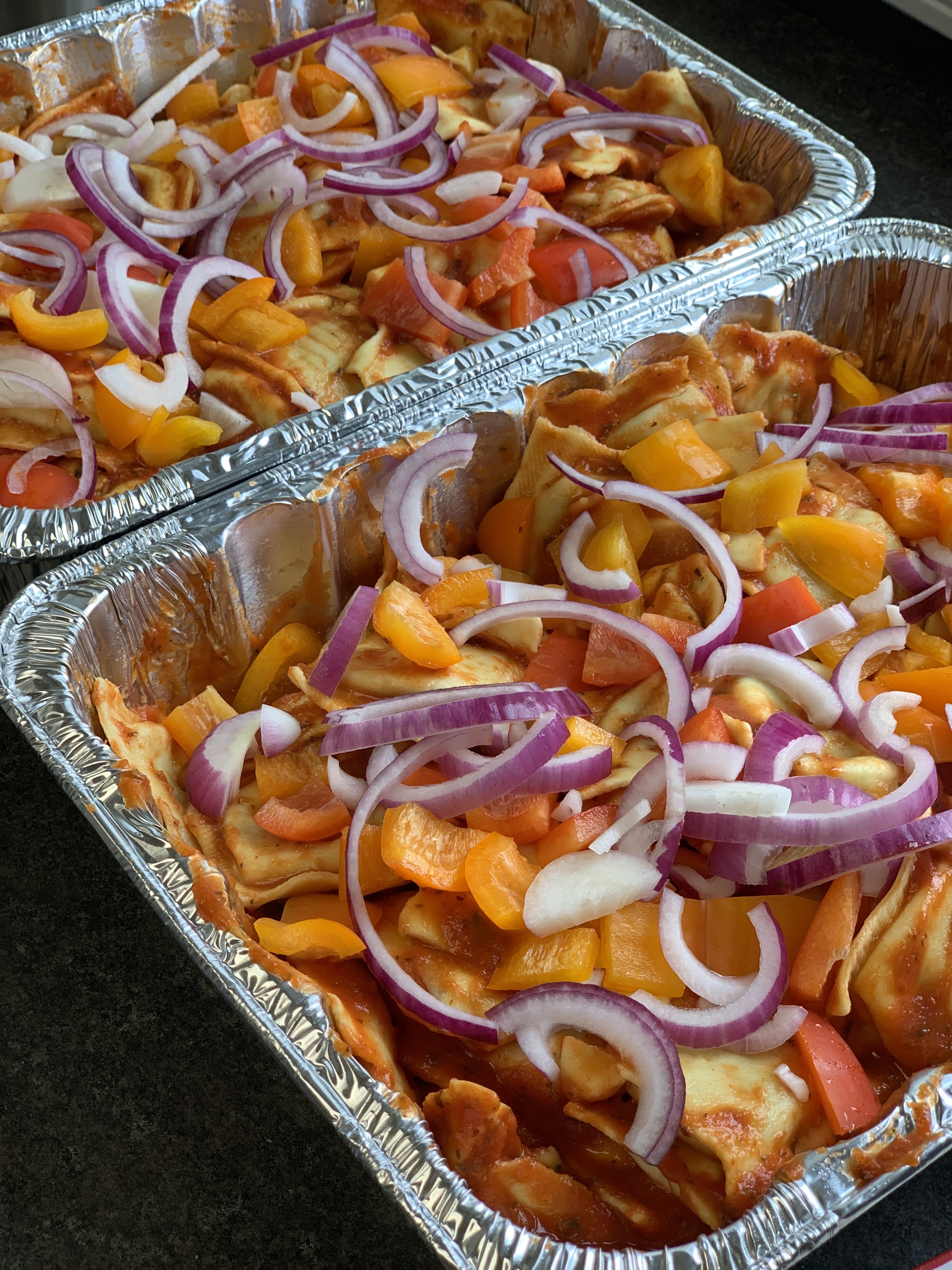 add the peppers and onion to the ravioli and bake for 15 minutes