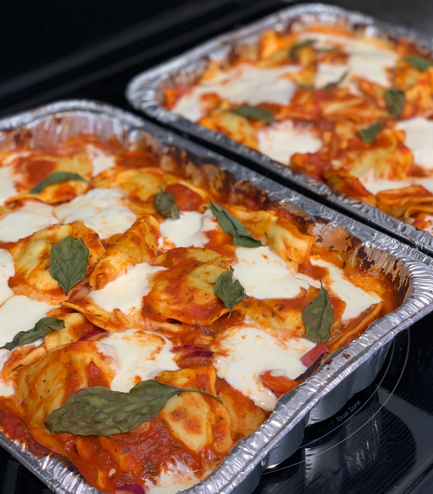1 pkg chicken and mozzarella ravioli, barely boiled