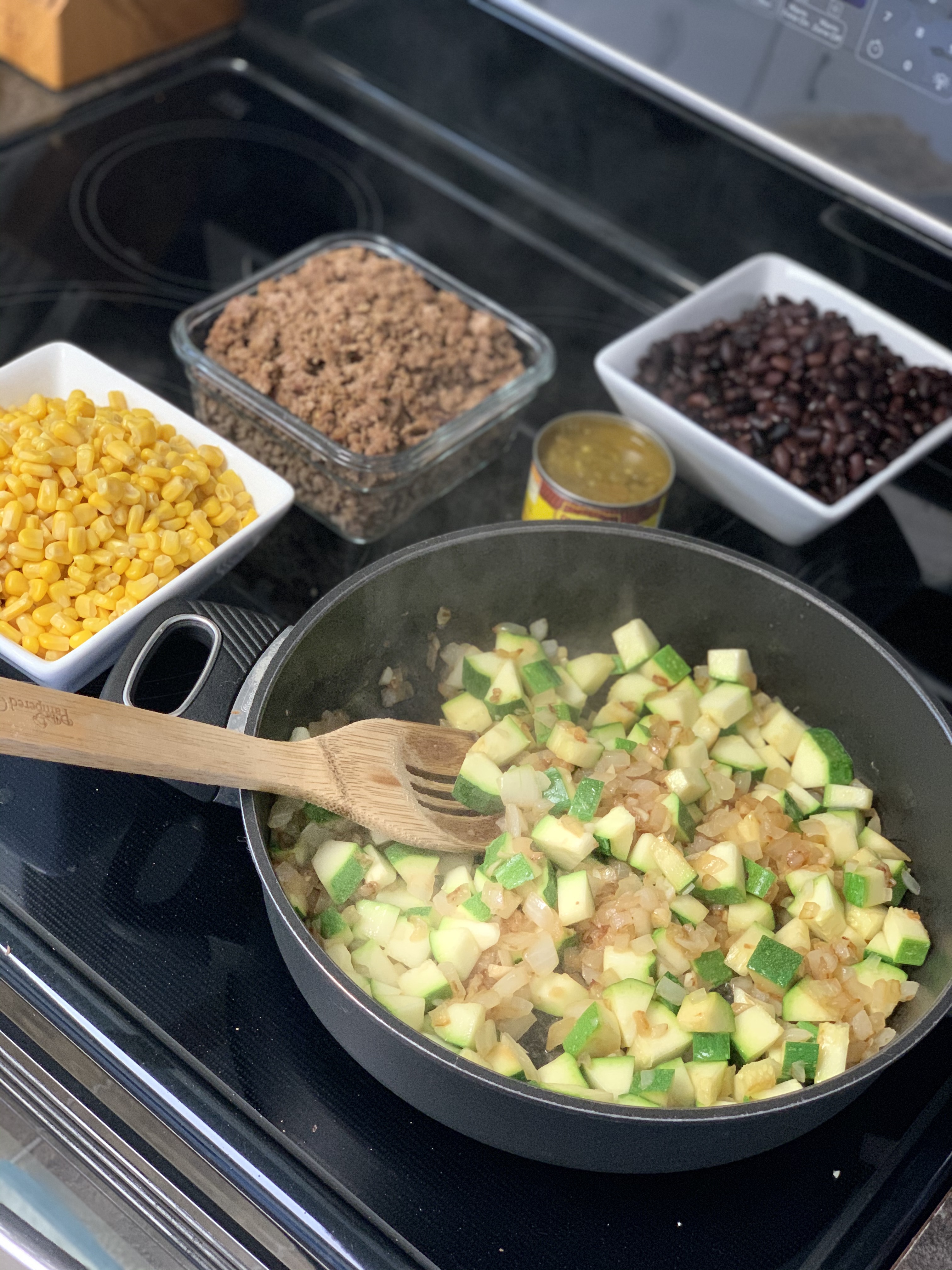for the enchiladas, brown the beef in the oil (strain if the beef is too fatty)