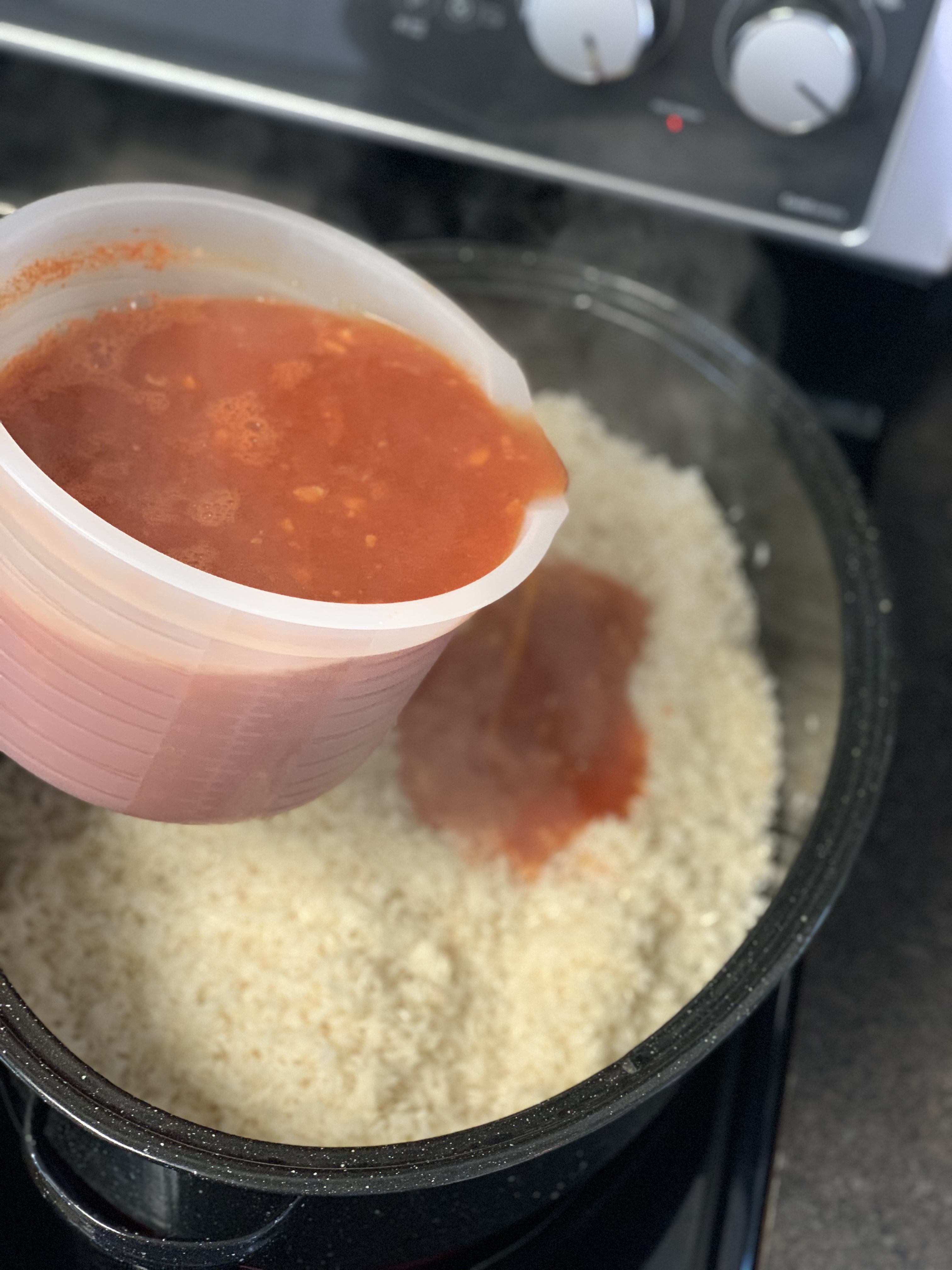 add the diced tomatoes (I ground up the tomatoes in a Vitamix)