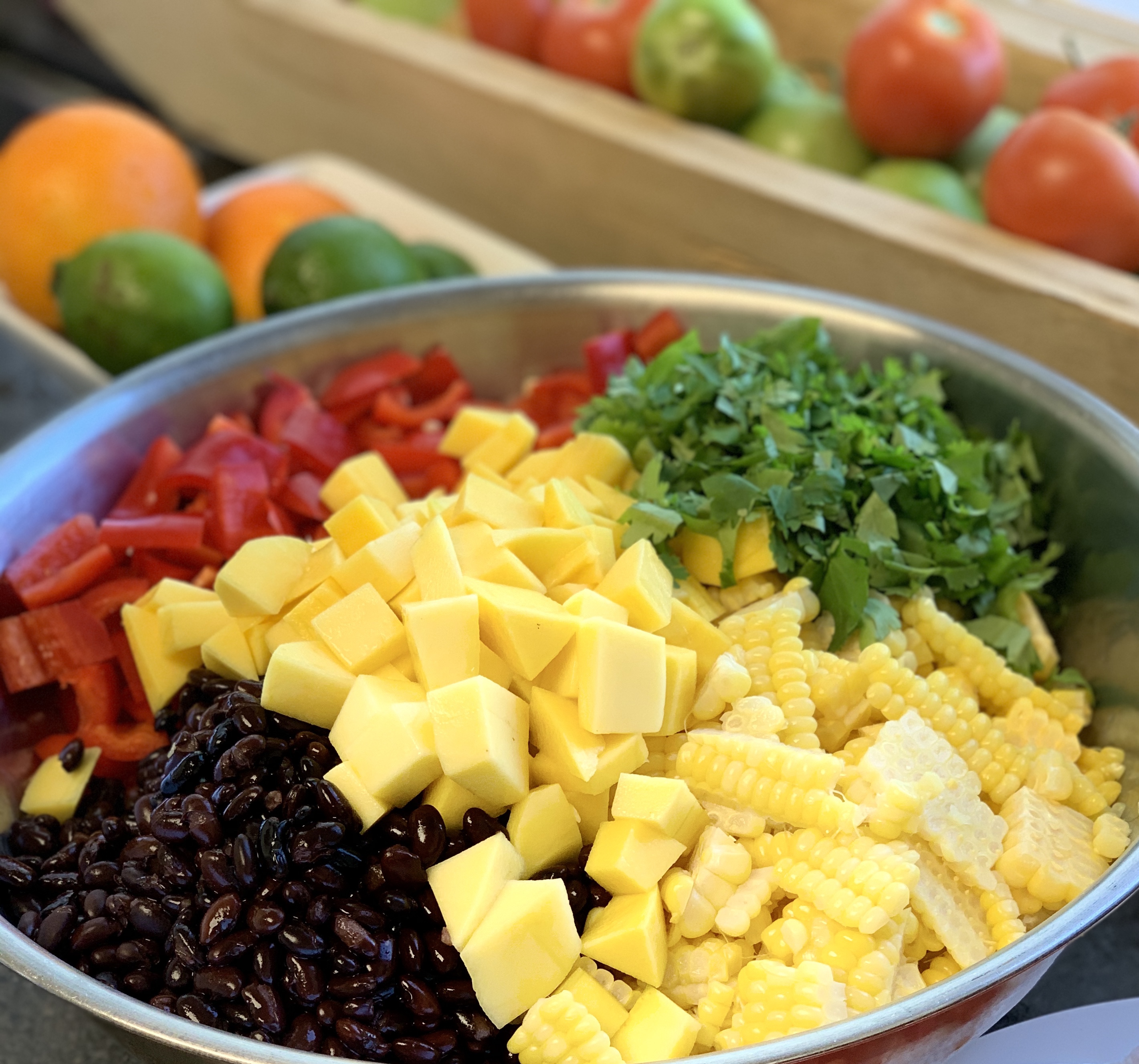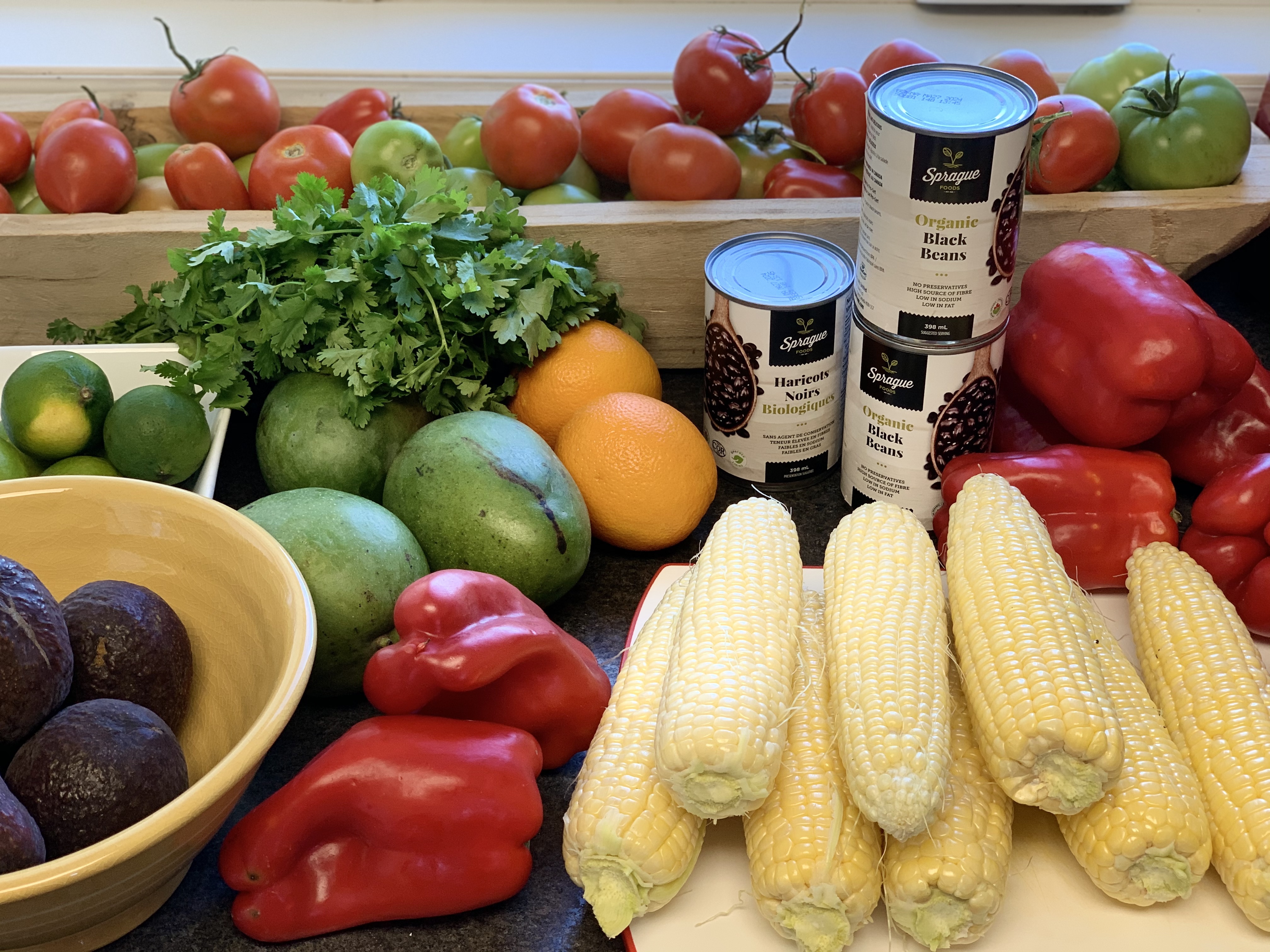 for the corn, you can use cobs from the garden and boil for a few minutes and then plunge in cold water in the sink and dry