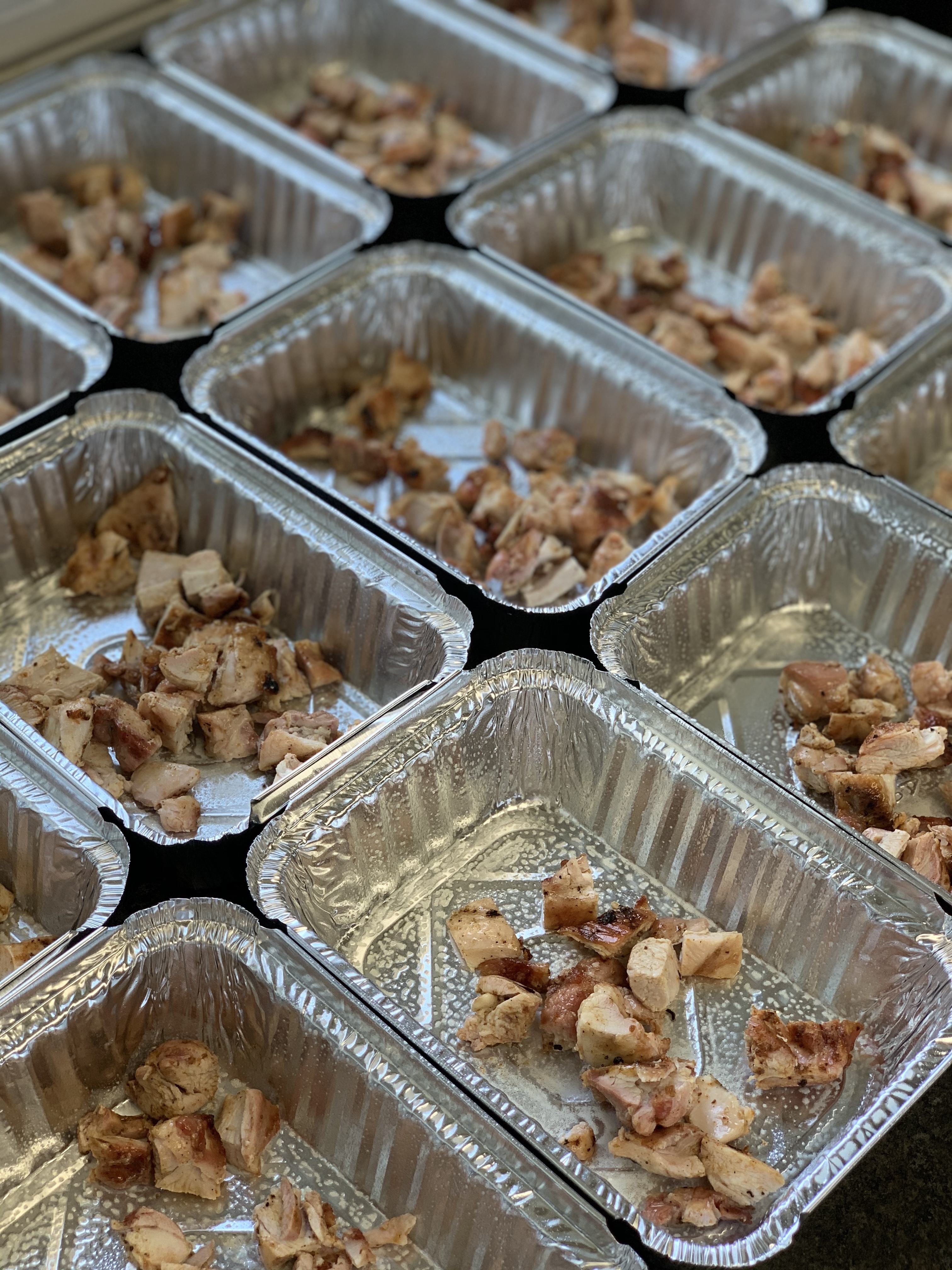 easiest thing is to have everything pre-cooked… so I bbq’d the chicken thighs (I used my favourite chicken bbq spice but just use whatever you love) and chopped them up…